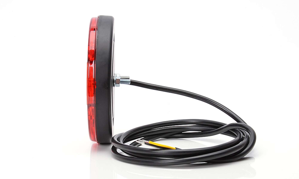 Ultraohut E-hyväksytty takavalo kolmella toiminnolla, sää- ja iskunkestävä, 12/24V-järjestelmille, ajoneuvon asennukseen sertifioitu.
