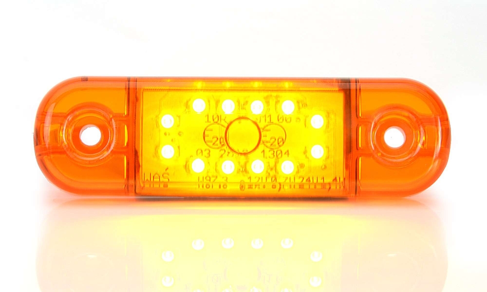 Ohut LED-sivuvalo 12 diodilla ja oranssilla lasilla. Muotoilu helpottaa asennusprosessia ja tekee lampusta erittäin käyttäjäystävällisenTuotetiedot