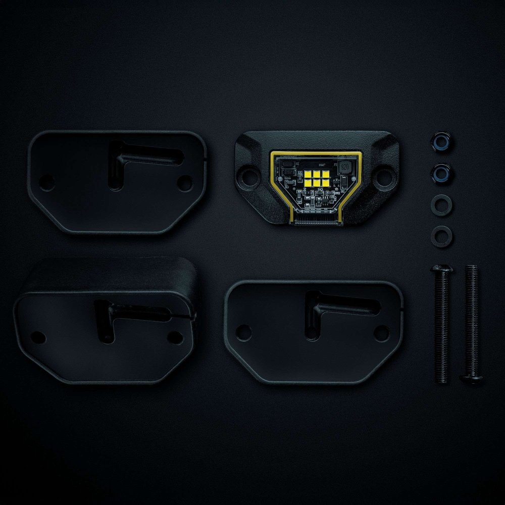 Unity rock light on erittäin ohut työvalo (74x14,3x42 mm ilman kiinnikettä) ja sopii mihin tahansa, missä sitä tarvitset. Kolmen mukana toimitettavan kiinnikkeen ansiosta se on monipuolinen valo, jonka asentaminen on helppoa. Valitse tasainen kiinnike, kaareva tai 30° kulma, jos haluat käyttää sitä scene lightina. Kiinnikkeet auttavat myös suojaamaan sekä valoa että ajoneuvon pintaa ja ehkäisevät korroosiota.