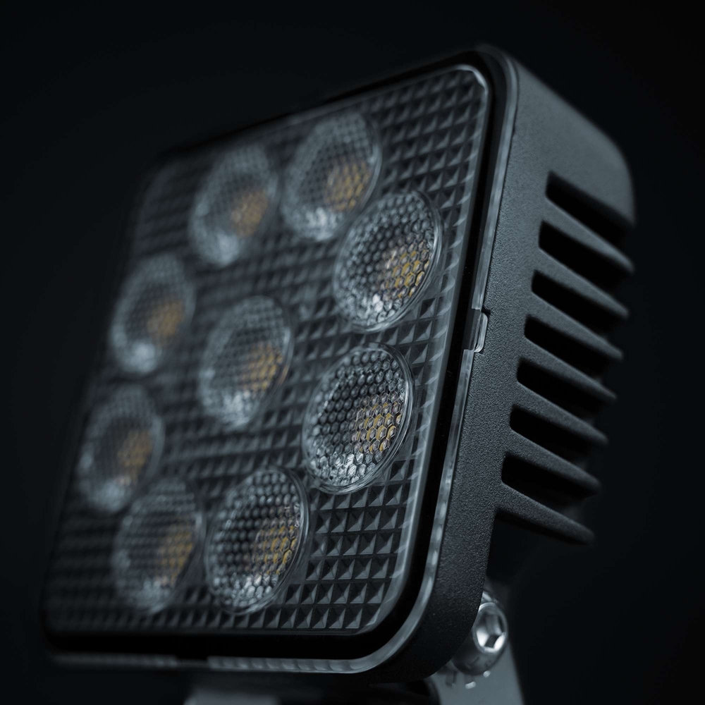 Infinity-muotoilu, jossa linssi ulottuu kulmiin – ei ainoastaan tee vaikutusta kokonaiskuvaan. Se täyttää myös kasvaneet liankestävyyden vaatimukset. Ohut muotoilu tekee sarjasta täydellisen valinnan nykyaikaisille ajoneuvoille, jotka tarvitsevat työvalaisimia kuten kuorma-autoja, traktoreita, perävaunuja, rakennuskoneita tai maatalouskoneita.
