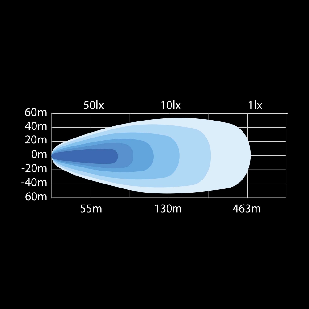 Kun autoon on asennettu 2 kpl 9" flood ja 1 kpl 9" spot, saat yhteensä 29 000 todellista lumenia ja 1 luksi 1195 metrin etäisyydellä. Kuorma-auton katolla asennettuna 6 kpl 9" spot-lamppua tuottaa 60 000 todellista lumenia ja 1 luksi 2449 metrin etäisyydellä.