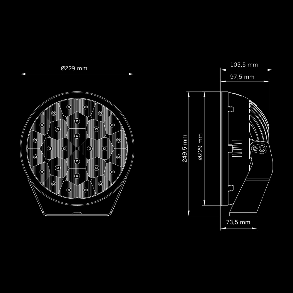 Saapuu kolmeen eri versioon, 7" flood-valokuvalla, 9" spot- tai flood-valokuvalla. Yhdistä ne haluamallasi tavalla saadaksesi valokuvion, joka on räätälöity juuri sinun ajamiisi teihin ja olosuhteisiin. Flood-valokuvioiset versiot ovat E-hyväksyttyjä.