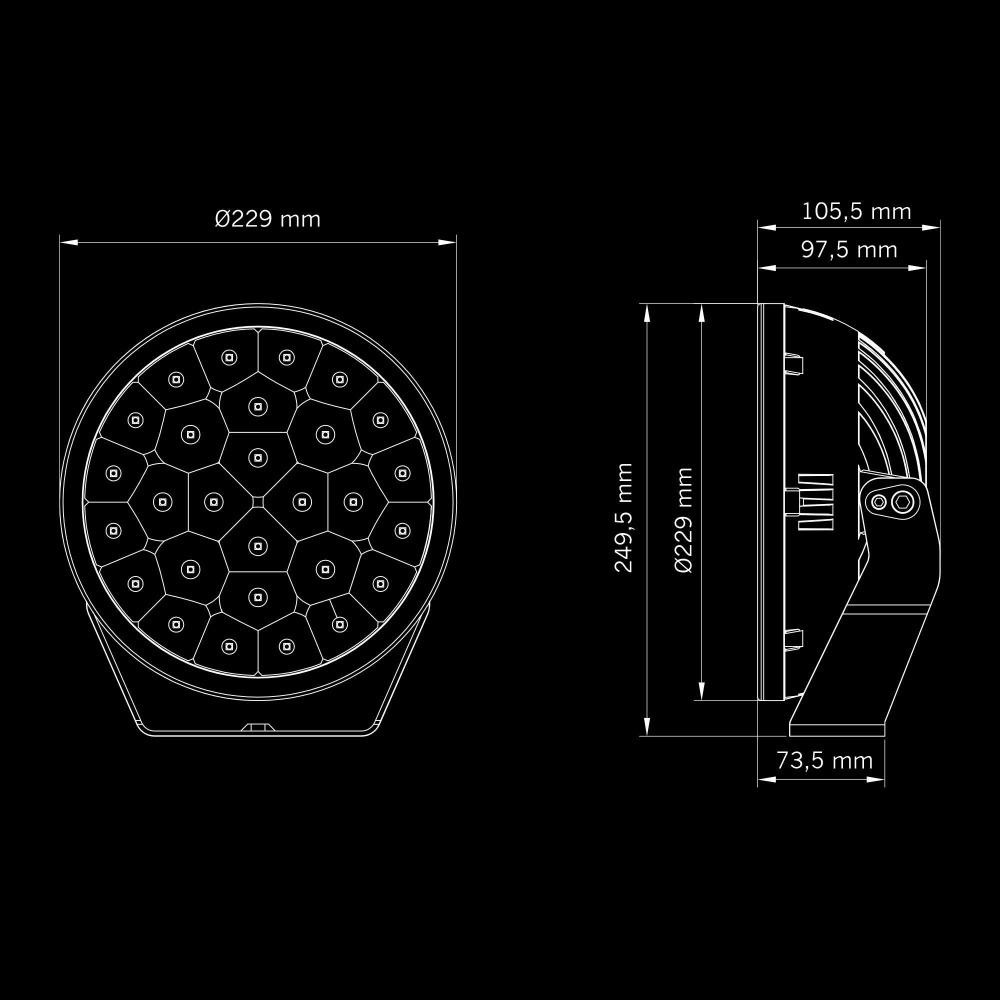 Saapuu kolmeen eri versioon, 7" flood-valokuvalla, 9" spot- tai flood-valokuvalla. Yhdistä ne haluamallasi tavalla saadaksesi valokuvion, joka on räätälöity juuri sinun ajamiisi teihin ja olosuhteisiin. Flood-valokuvioiset versiot ovat E-hyväksyttyjä.