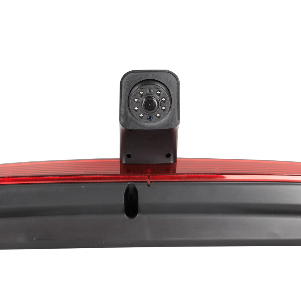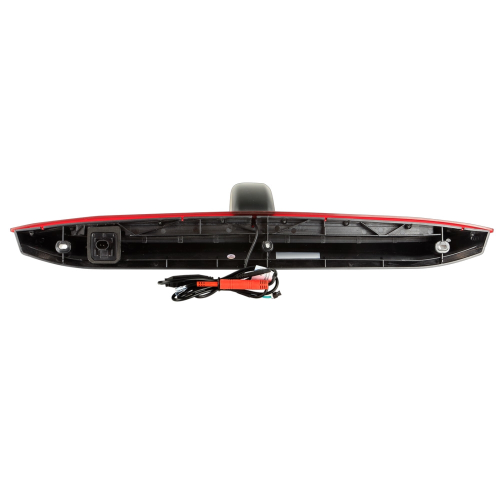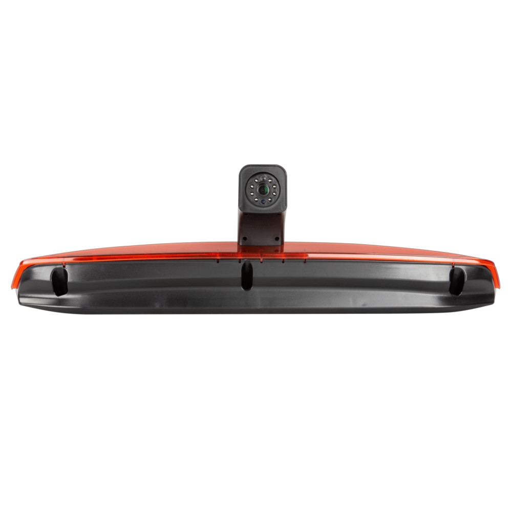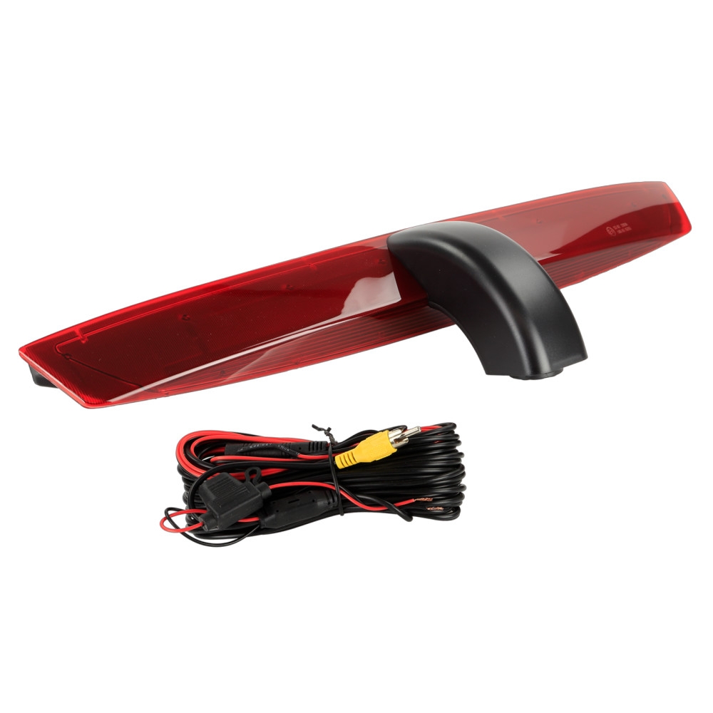 Tämä kamera on muovinen ja saatavana mustana ja punaisena. Ohjausviivat voidaan aktivoida tai deaktivoida jumperin avulla, ja näkökulmaa voidaan säätää eri asennustarpeiden mukaan. Kamerassa on 1/3" CMOS-kuvasensori ja se käyttää NTSC TV-järjestelmää. Tehokkailla pikseleillä 976 x 592 ja 600 TV-linjan tarkkuudella se tarjoaa kirkkaan ja selkeän kuvan. Linssin kulma on diagonaalisesti 160° ja vaakasuora näkökulma 115° ja pystysuora näkökulma 75°. Kamera on suunniteltu toimimaan lämpötiloissa -30°C - 75°C ja se voidaan varastoida lämpötiloissa -40°C - 80°C. Mitat on mukautettu sopimaan OEM-jarruvaloon, jota se korvasi. Liitäntätiedot: - Punainen johto: +12V virtalähde. - Musta johto: suora maadoitus auton runkoon. - Keltainen RCA-johto: videoliitäntä. - Vihreä jumper: aktivoi/deaktivoi ohjausviivat. On tärkeää varmistaa, että kolmas jarruvalo on oikein kytketty peruutuskameran asennuksessa virheviestien välttämiseksi. Jos tietonäytössä ilmenee virhe, OEM-lamppu voidaan kytkeä rinnakkain tai kuormitusvastus (10k Ohm, 5 Watt min) voidaan käyttää OEM-lampun simulointiin.
