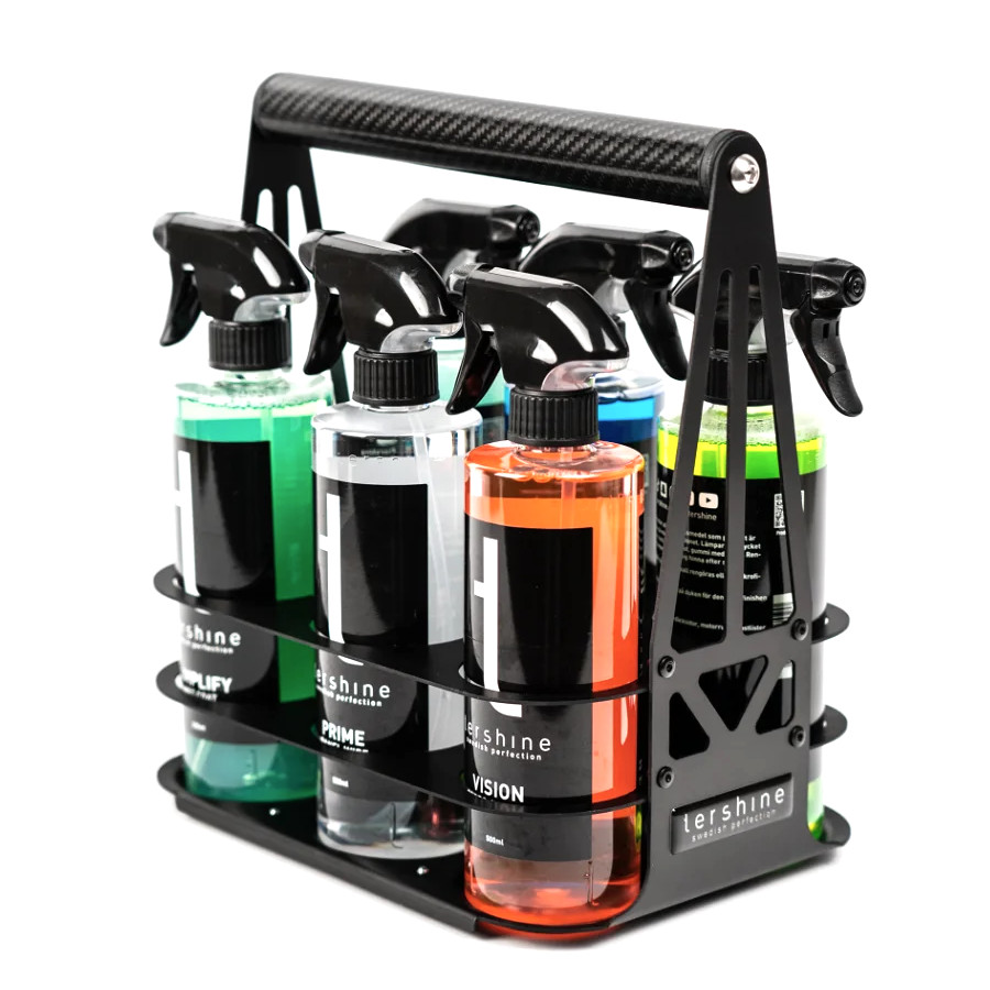 Tershine Gloss Holder on todella tyylikäs ja mukava pidike, räätälöity tershine:lle. Korkealaatuisesti rakennettu mustasta eloksoidusta alumiinista, jossa on tilaa 6 kpl 500 ml pulloille mistä tahansa merkistä (myös pitkille purkeille). Kahva aidosta hiilikuidusta ja kestävä rakenne tershine-logolla sivuilla.